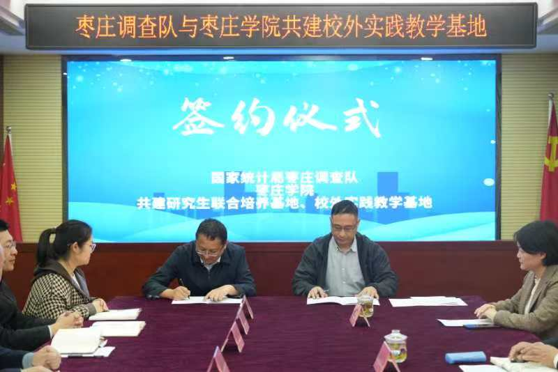 双方现场签订了研究生联合培养基地协议,确定国家统计局枣庄调查队为教学实践基地,并举行现场揭牌仪式。