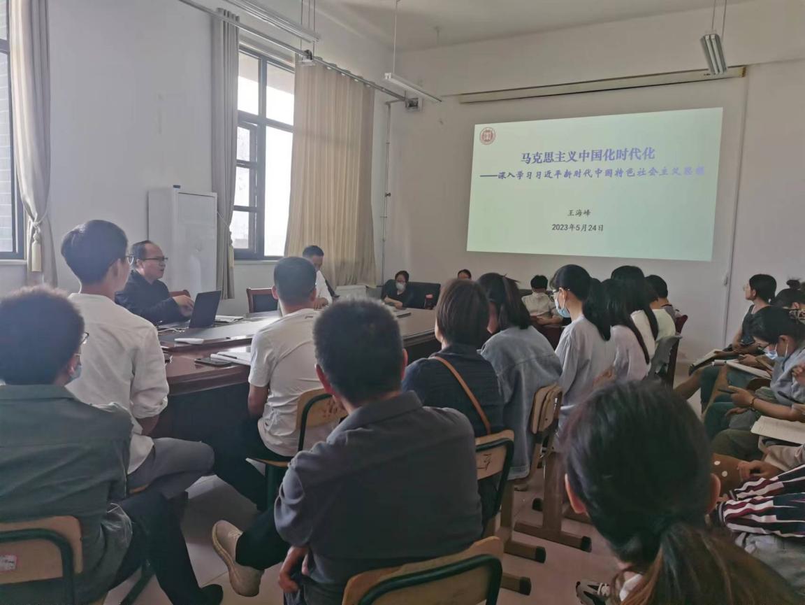 为深入开展学习贯彻习近平新时代中国特色社会主义思想主题教育,5月24午,永利yl23455党总支书记王海峰以《马克思主义中国化时代化——深入学习习近平新时代中国特色社会主义思想》为题给全体教职工讲授主题教育专题党课永利yl23455全体教职工参加此次党课学习。