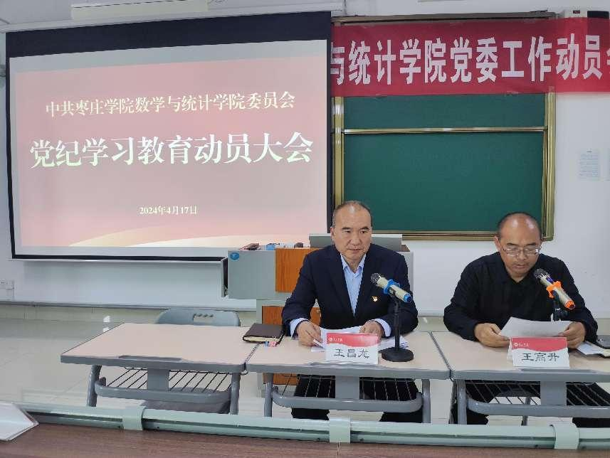 为深入贯彻落实习近平总书记关于党纪学习教育的重要讲话和重要指示批示精神,全面落实党中央、省委、学校党委关于党纪学习教育工作部署,4月17日下午,数学与统计学党委院组织召开党纪学习教育动员大会,会议由党委书记王昌龙主持并作动员讲话,学院党委班子及学院全体党员参加了会议。