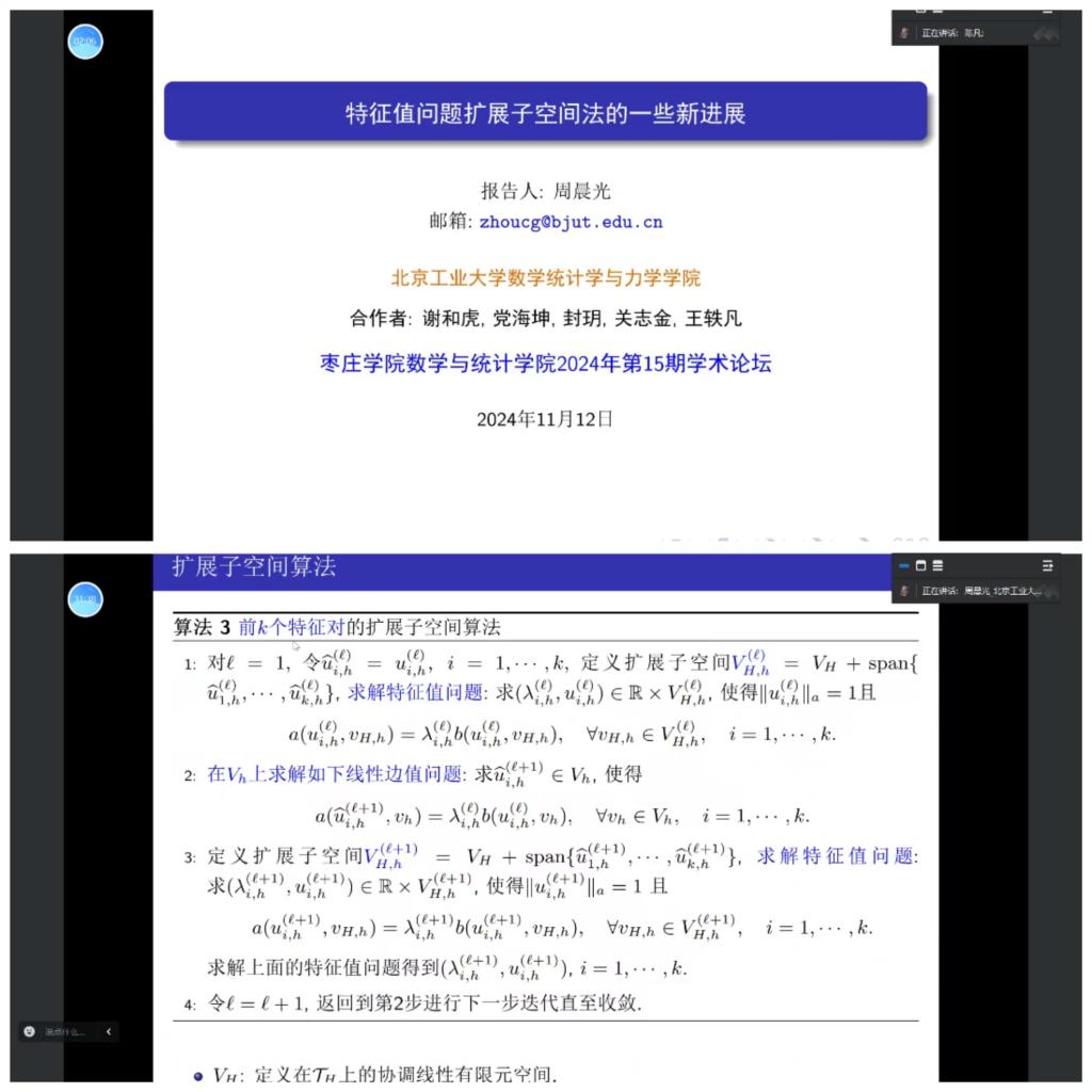 11月12日,永利yl23455举办学术论坛,学院邀请了北京工业大学周晨光博士做了题为《特征值问题扩展子空间法的新进展》的学术报告。