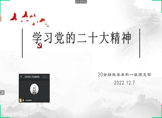此次活动,永利yl23455各班团支书采取线上的方式召开了“学习党的二十大精神”主题班会。通过党的二十大胜利召开与团支书声情并茂的讲述,我们看到了一个欣欣向荣的党,一个风华正茂的国家。二十大提出要全党全军全国各族人民紧密团结在以习近平同志为核心的党中央周围,牢记空谈误国、实干兴邦,坚定信心、同心同德,埋头苦干、奋勇前进,为全面建设社会主义现代化国家、全面推进中华民族伟大复兴而团结奋斗。