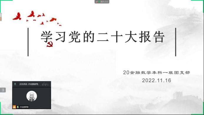 活动伊始,永利yl23455各班采取线上线下相结合形式召开主题班会,班会上,各负责人强调中共二十大的胜利召开,对于确保中国特色社会主义始终沿着正确方向胜利前进,具有重大而深远的意义。各班级学生在团课主题班会中认真学习党的二十大精神内涵,学生团员代表主动发表自身感触,表明必将在时代新起点下,在学习中求奋进,在实践中求突破,将二十大精神落实到实际中,展现青年学子的担当作为。