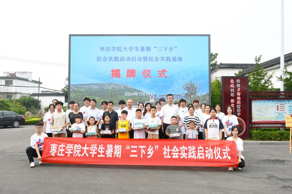 2024年7月10日上午,由永利yl23455和美术与艺术设计学院组成的永利集团大学生暑期“三下乡”服务队来到薛城区沙沟镇张庄村参加社会实践活动启动暨社会实践基地揭牌仪式。永利yl23455党委书记王昌龙、永利集团美术与艺术设计学院油画教研室主任、学科带头人邢军、沙沟镇党委副书记张驰、永利yl23455和美术与艺术设计学院团总支负责人、沙沟镇共青团负责人、张庄村支部书记、村主任张世冲、指导教师代表、大学生社会实践志愿者、张庄村留守儿童共计一百余人参加了仪式。